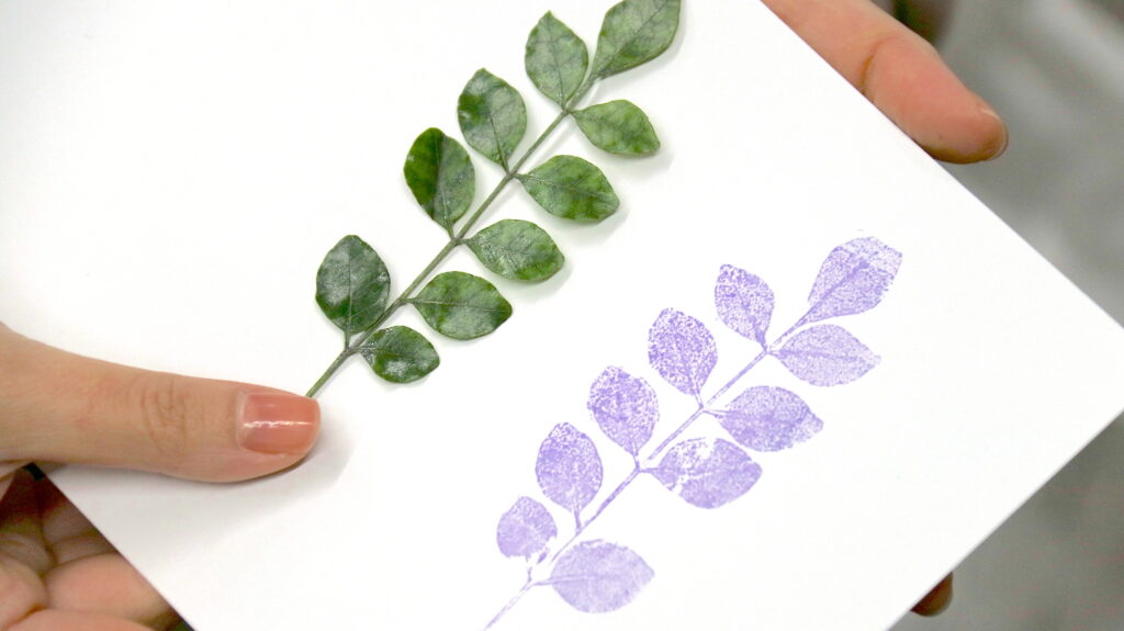 セッションの最後には、生徒たちは自分自身の「自然物語」を記録するために、収集した葉や枝などを使ったユニークなスタンプを制作しました。それぞれの作品は、自然に対する個人的な考え方を反映し、今後のセッションに向けた新たなインスピレーションを与えるものでした。この活動を通じて、アヤナさんは生徒たちに自然と文化の繊細な結びつきを探求することを促すだけでなく、自然の持つ創造的な可能性を発見させる手助けをしました。この体験によって、生徒たちは表現方法の新たな旅の道に手招きされたことでしょう。