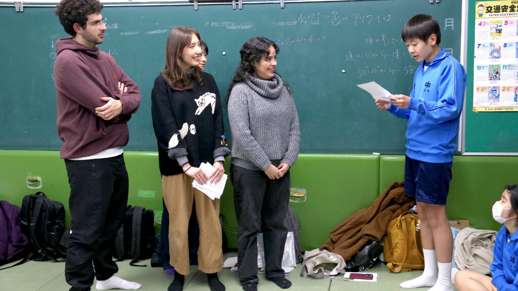 アーティストたちは生徒たちとコミュニケーションをとりながら仲を深めていき、3人が使う言語のスペイン語とポルトガル語での挨拶を生徒たちに伝えました。言語を通して外国文化に触れることで、生徒たちの探究心が刺激されたと思います。私は台湾出身なので、異なる文化背景を持つスタッフの一員として、こうした変化の重要性を深く実感しました。アートは単なるコミュニケーションの手段にとどまらず、文化の違いを越える架け橋となるものだと思います。